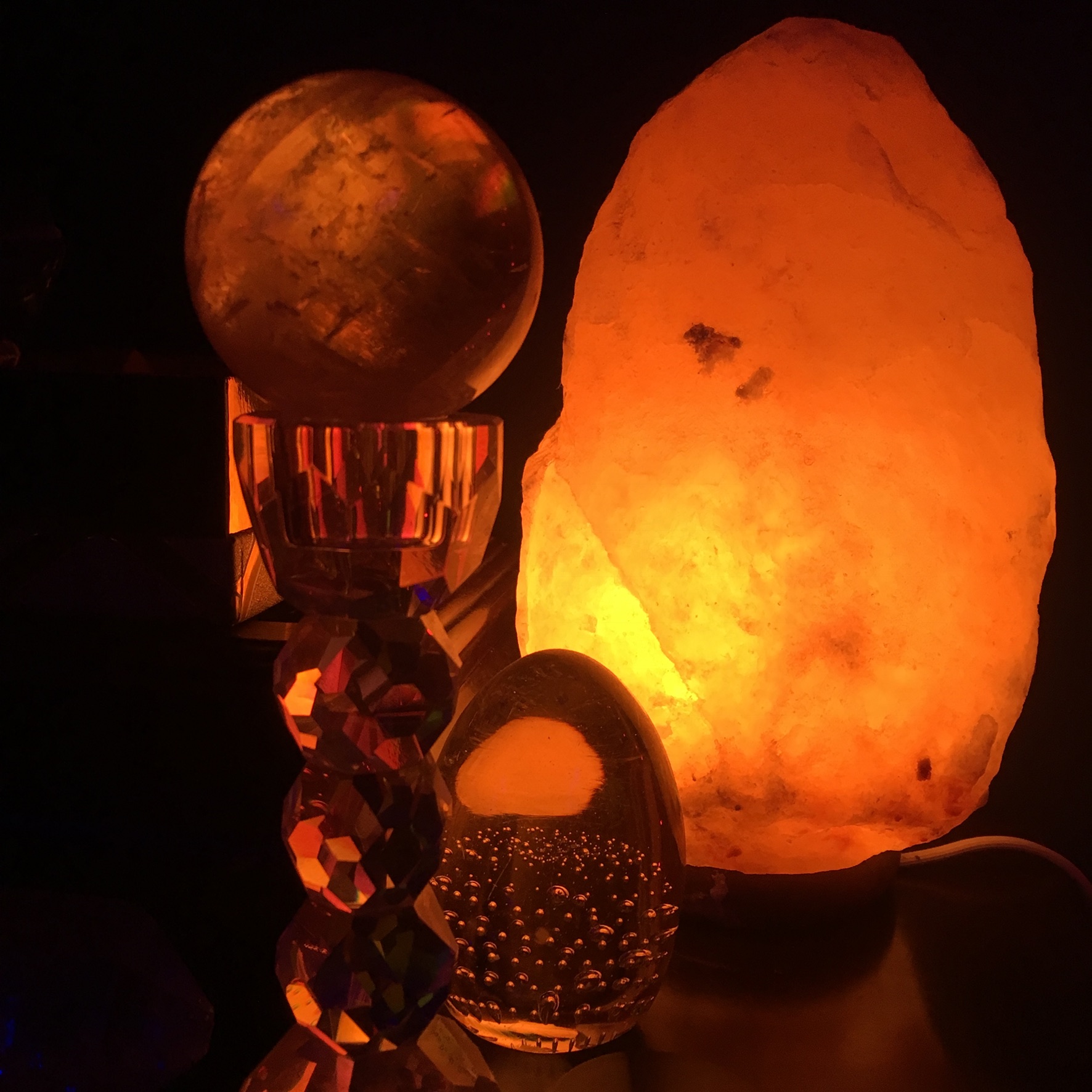 -The bulb inside of the lamp heats the crystal and supports the ionizing effect. Salt itself is hygroscopic and attracts the water from the surroundings. You can often see that the lamp is damp or even wet, especially in more humid environments. Due to the gentle heat of the lamp, the water quickly evaporates and during the evaporation process the beneficial negative ions (that are naturally created in nature) get created. They go on to bind with excessive positive ions in the air (bacteria, molds, allergens, and harmful electronic frequencies all carry a positive charge) and neutralize the electronic smog in your home. Therefore these are great for allergies or work great as air purifiers. Always available on my website