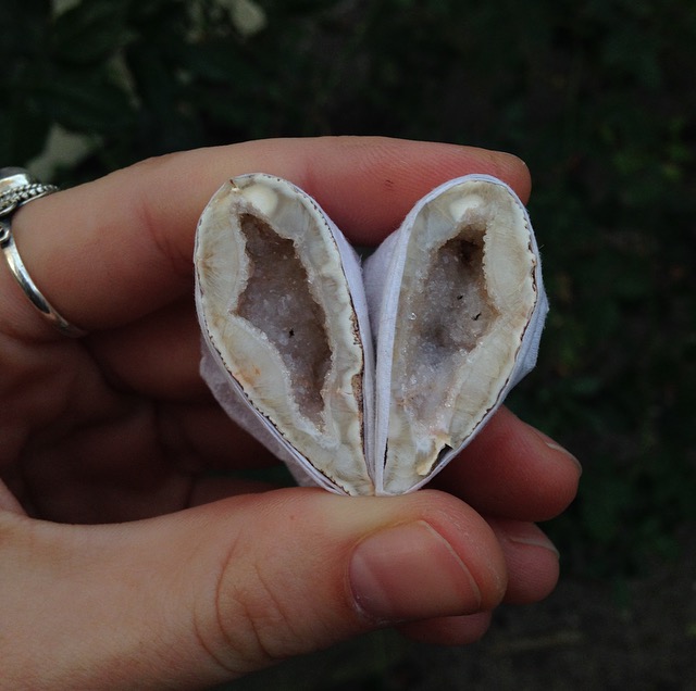 ~Love Stones: Found in Brazil, these geodes or ocos are cut in half and polished on two sides. Keep half for yourself, and give the other half to a loved one. When you bring the two halves together, they make one complete heart.