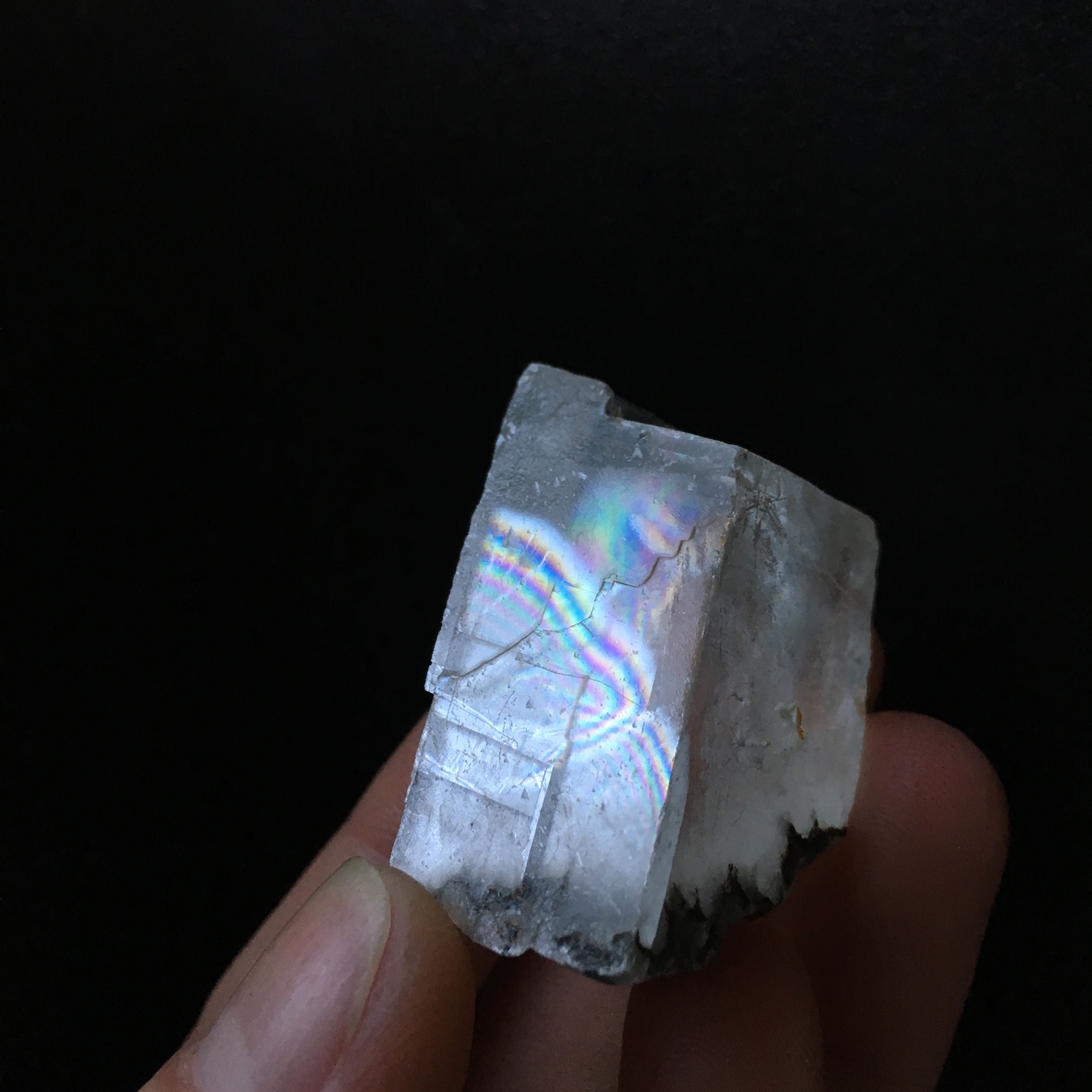 This Calcite has INTENSE layers of huge rainbows inside of it.