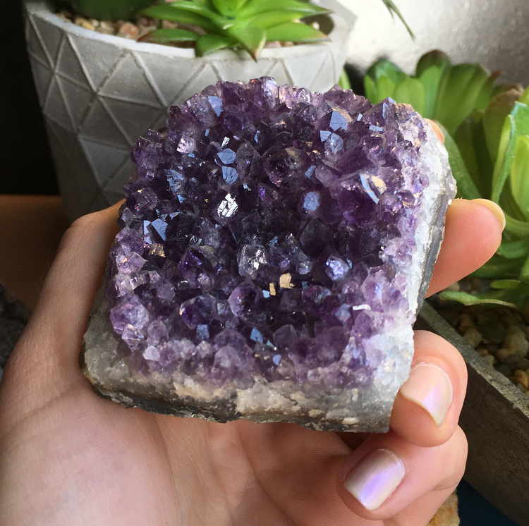 Amethyst • a precious stone consisting of a violet or purple variety of quartz. Also known as the stone of spirituality. Aids with sleep, insomnia, and nightmares. This stone has balancing energy, & helps with emotional issues & relieving stress. Wonderful for meditation. You can program crystals to help you in your life.