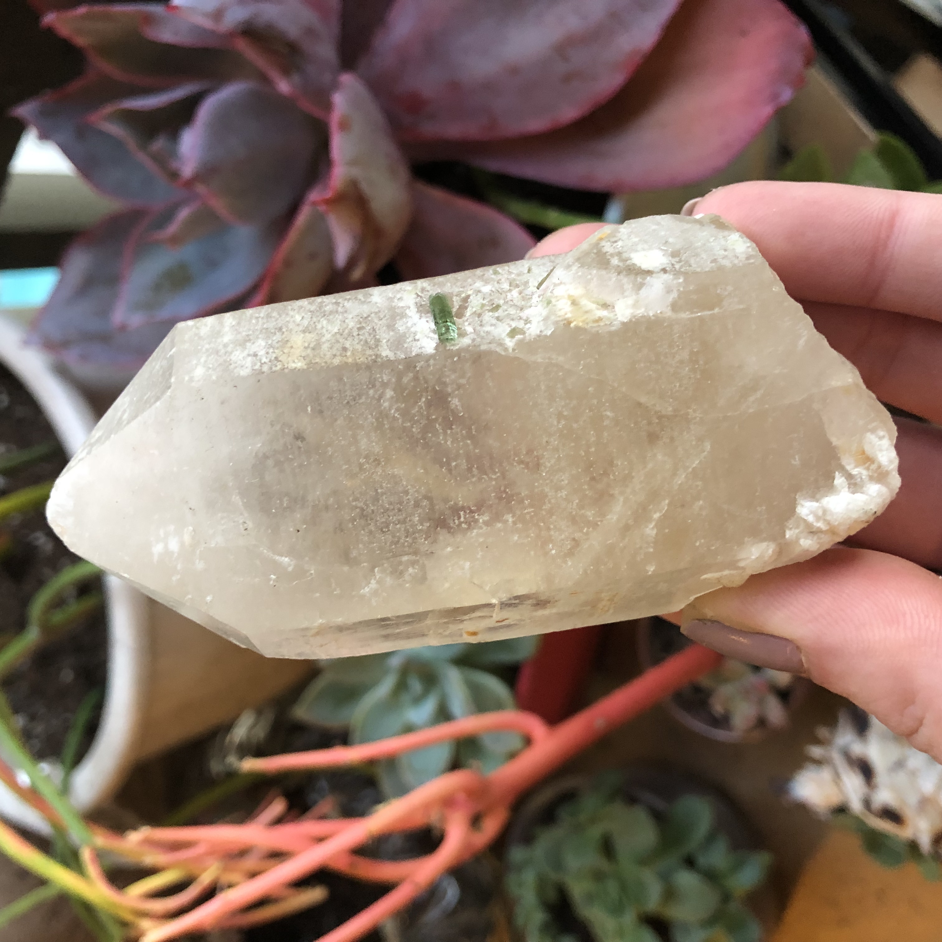 Natural Citrine Point with Green Tourmaline