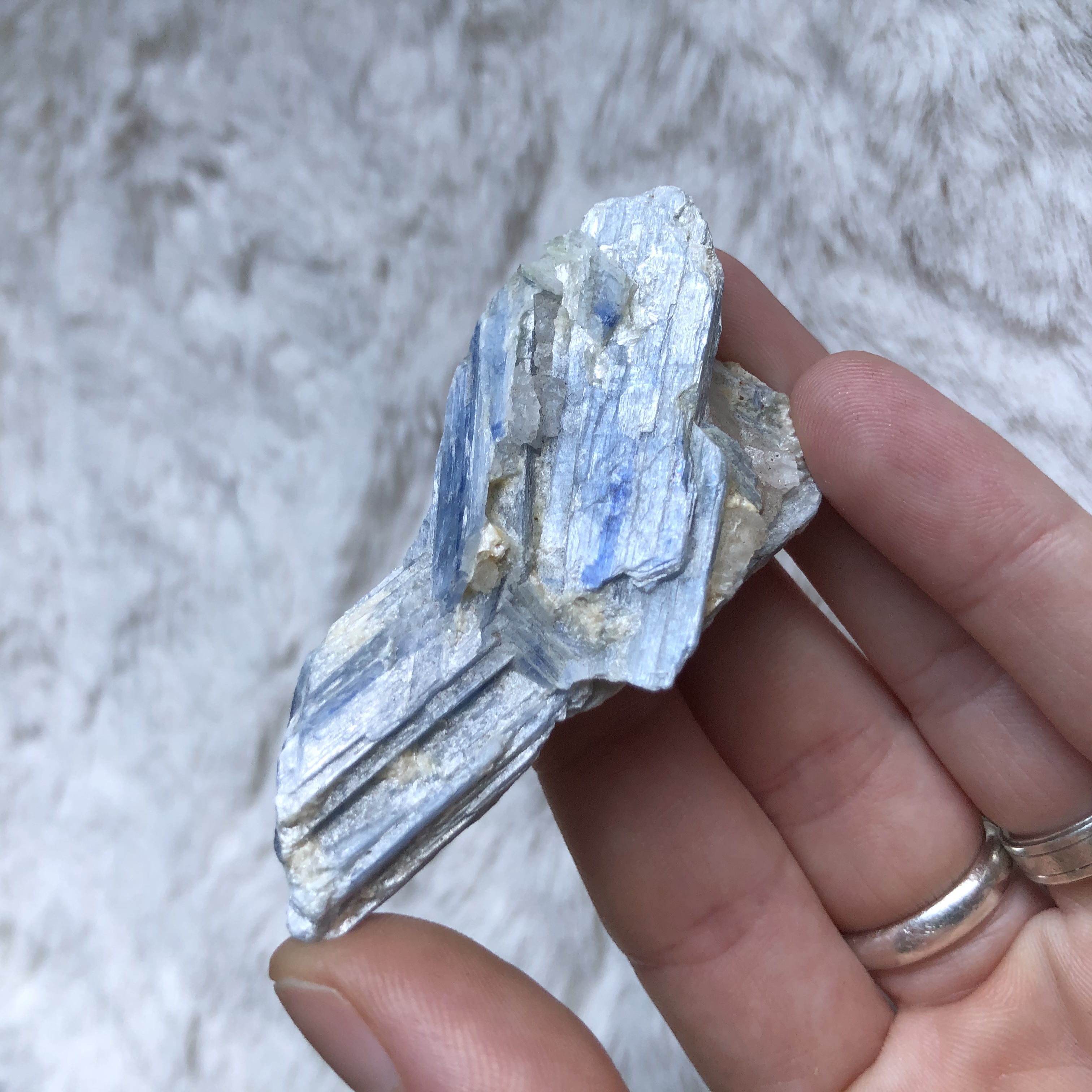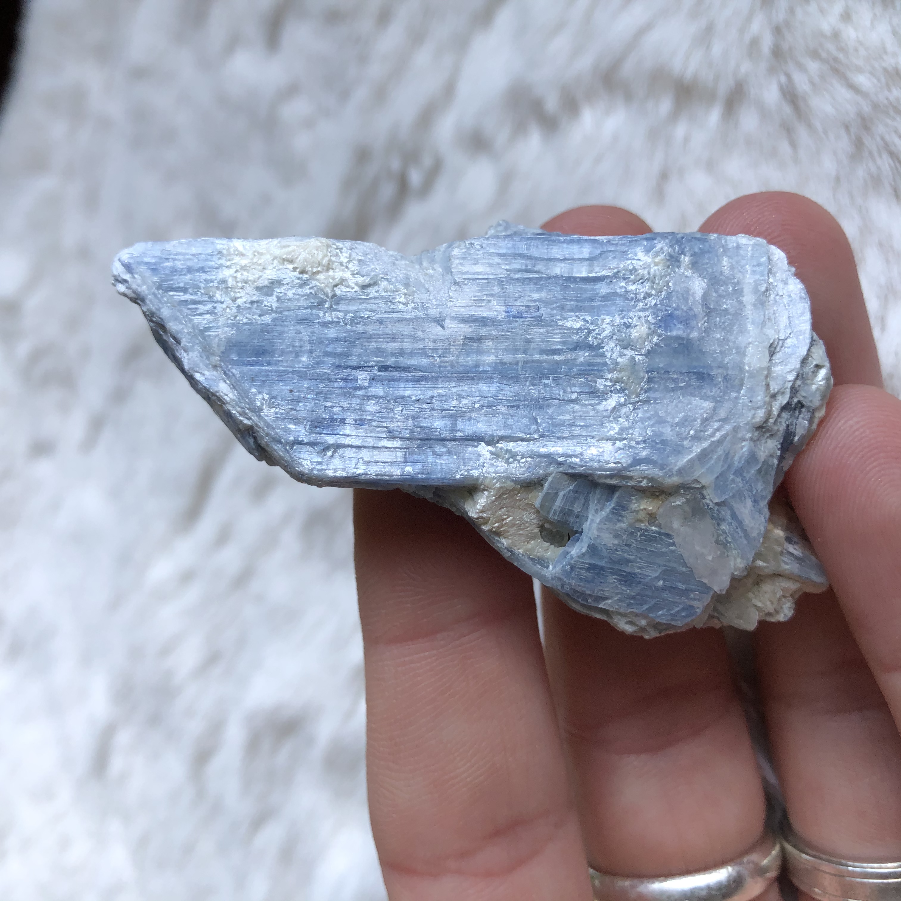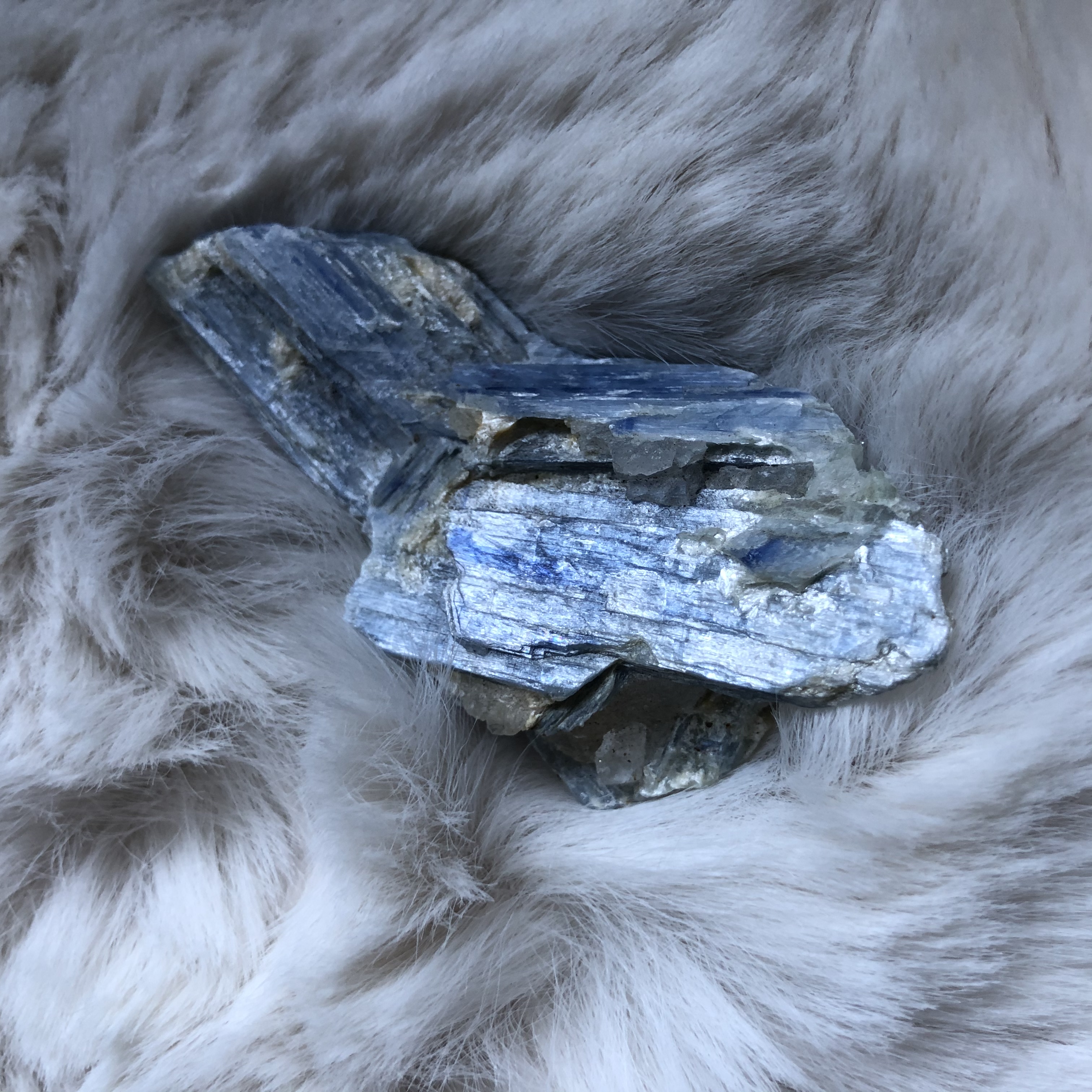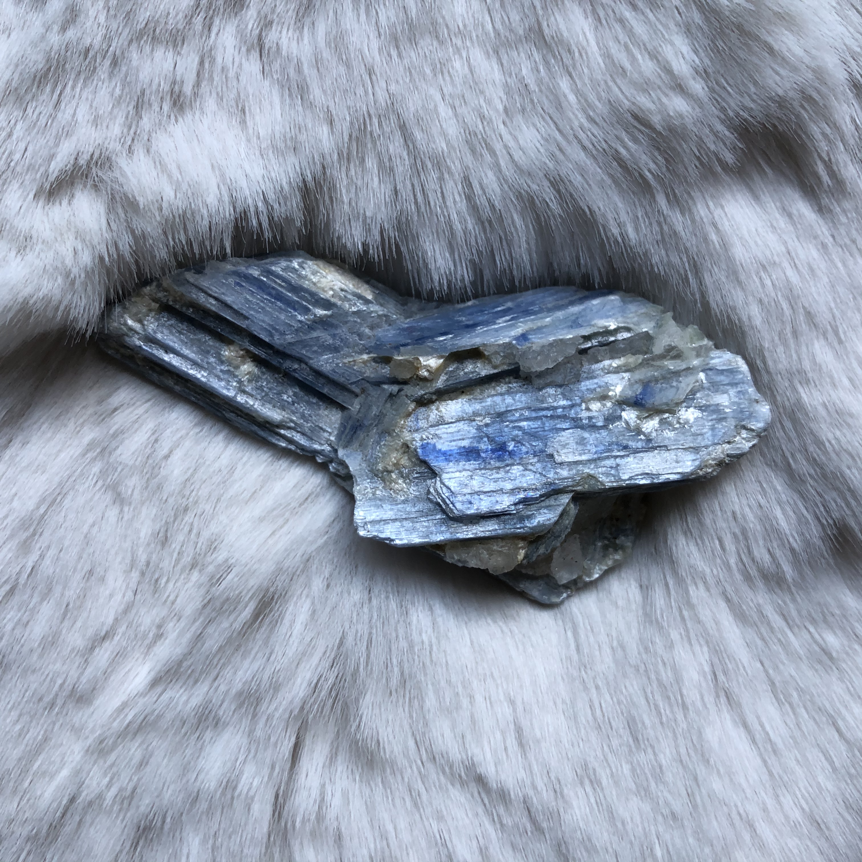 Blue Kyanite assists with communication and voicing your truth. Doesn’t need energetic clearing so it’s great for cleansing your other crystals with.