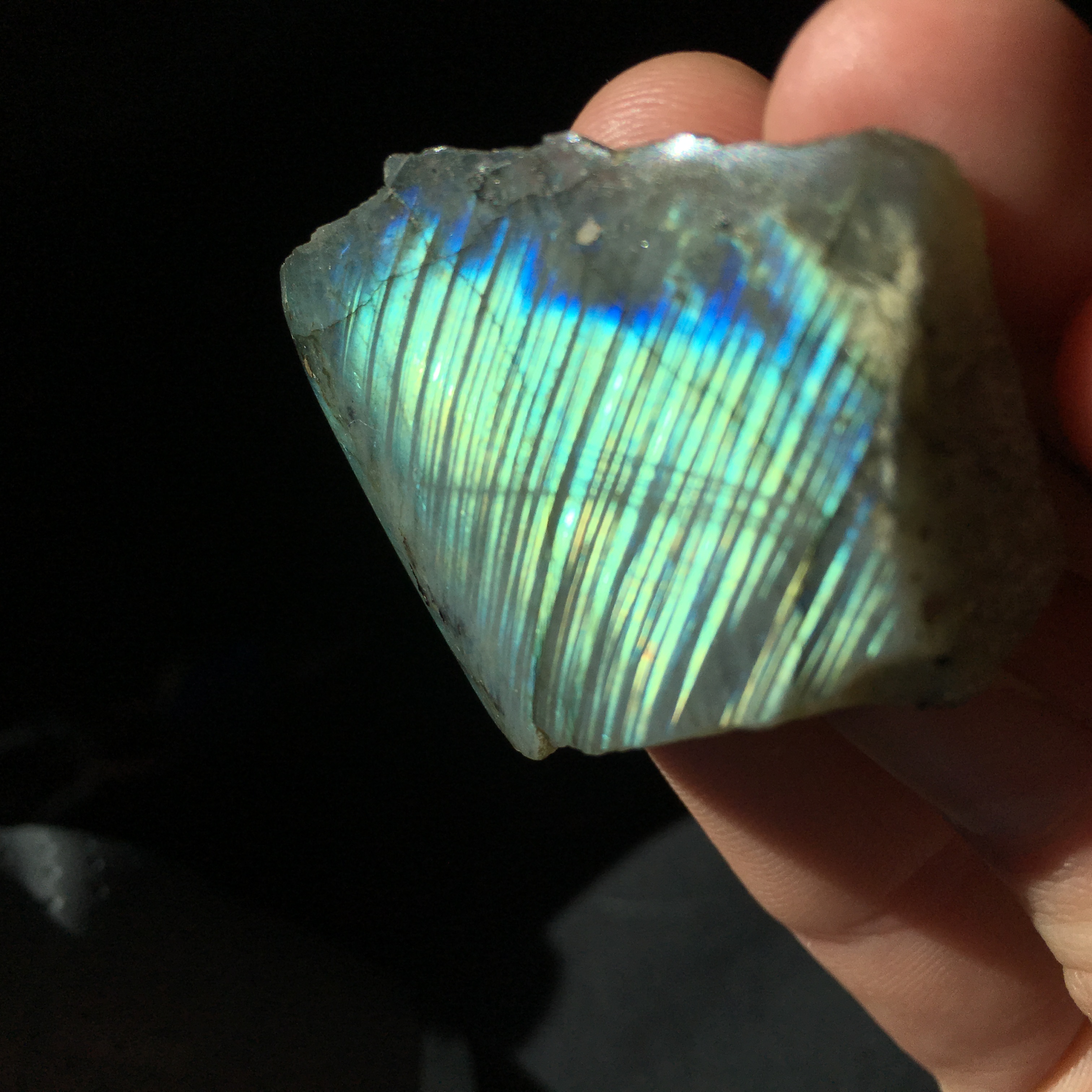 -Labradorite/Spectrolite: A mystical stone revealing shimmering colors. Helps one to transcend the sense of separateness, dissolving personal boundaries. Assists the communication with the higher self and spirit guides. Creates a shielding force throughout the aura and strengthening natural energies from within. It protects against the negativity & misfortunes of this world, & provides safe exploration into alternate levels of consciousness.