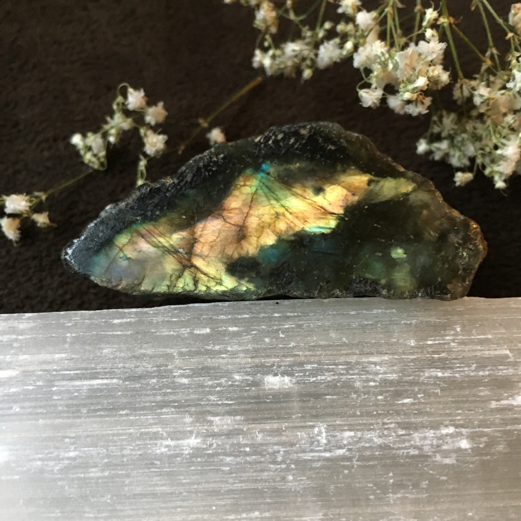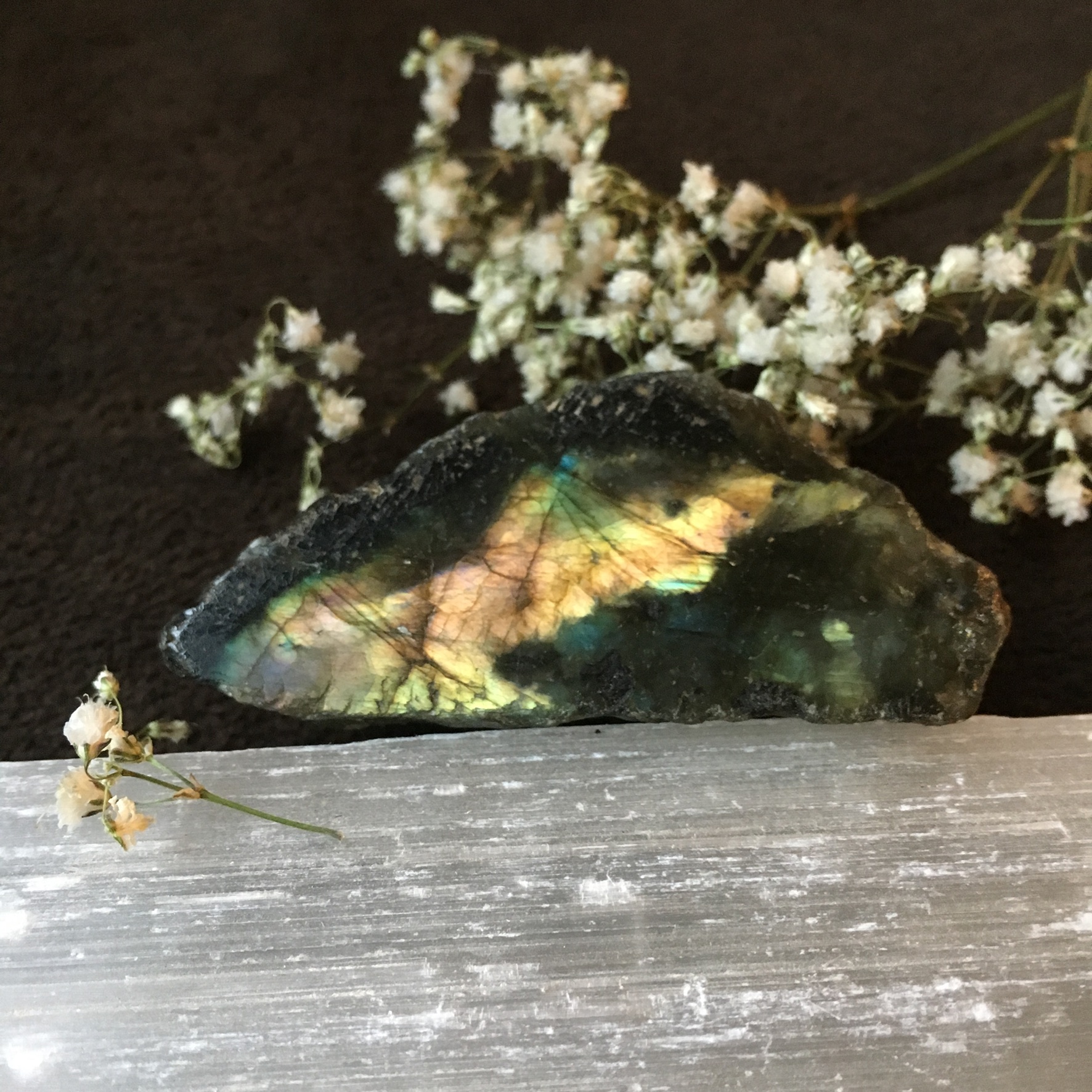 Labradorite | a mystical stone that possesses a glimmering “flash” of color. This stone is known for its magical qualities and is associated with spiritual guidance. A powerful stone that connects one to their highest self.
