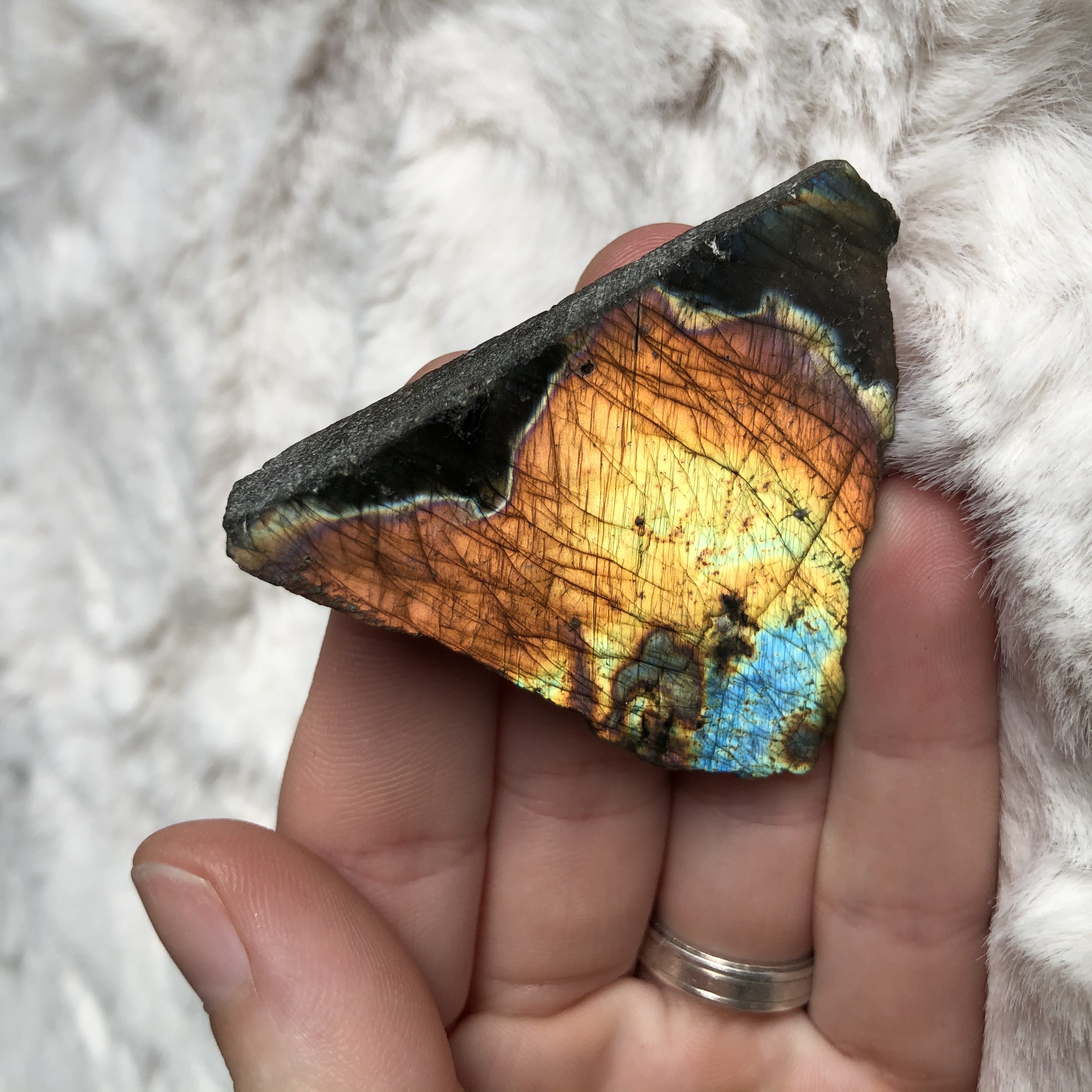 Labradorite | a mystical stone that possesses a glimmering “flash” of color. This stone is known for its magical qualities and is associated with spiritual guidance. A powerful stone that connects one to their highest self.
