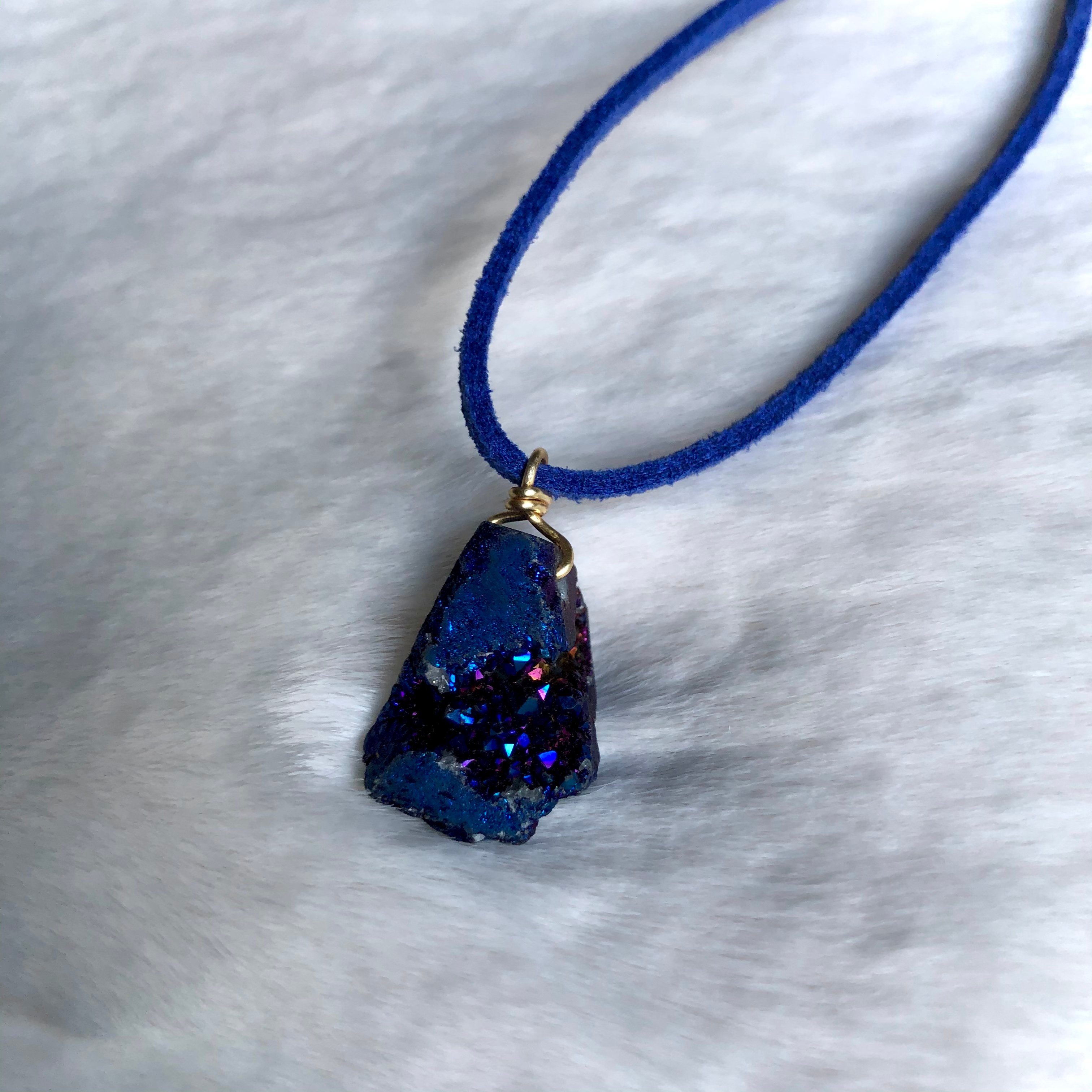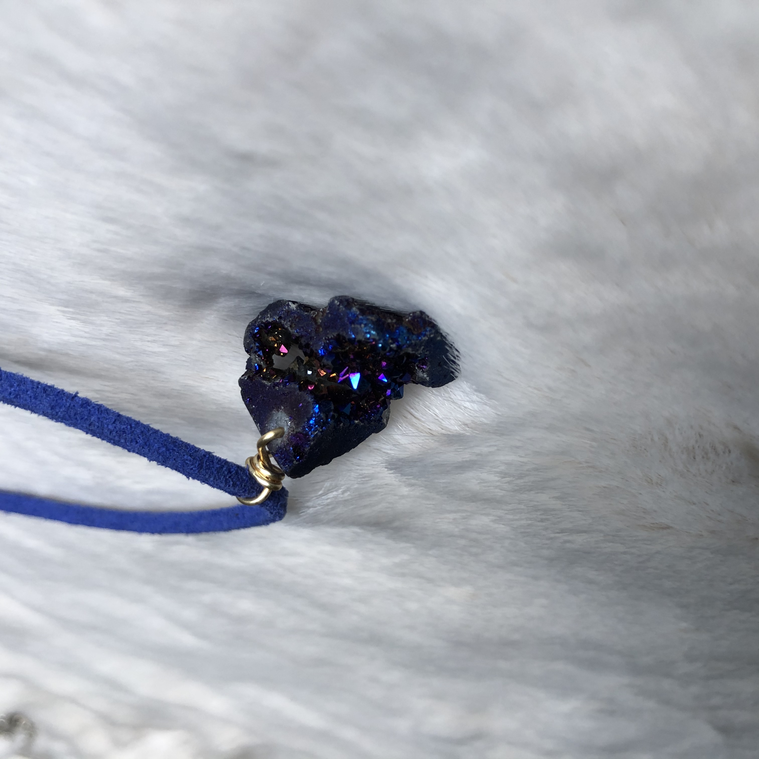Titanium Quartz Druzy Crystal on an adjustable chord necklace.