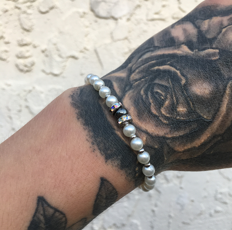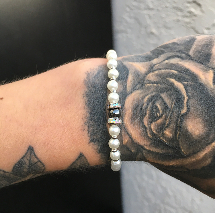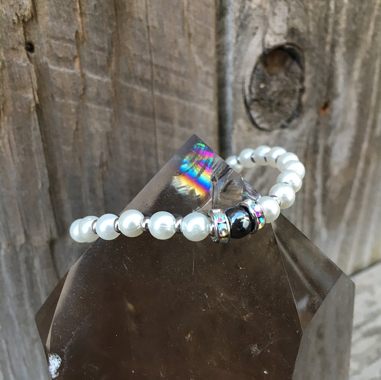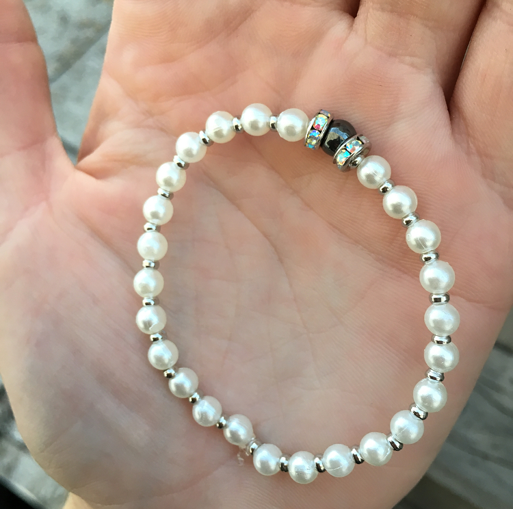 A hand made bracelet with one Hematite stone bead. Made for a small-medium size wrist.