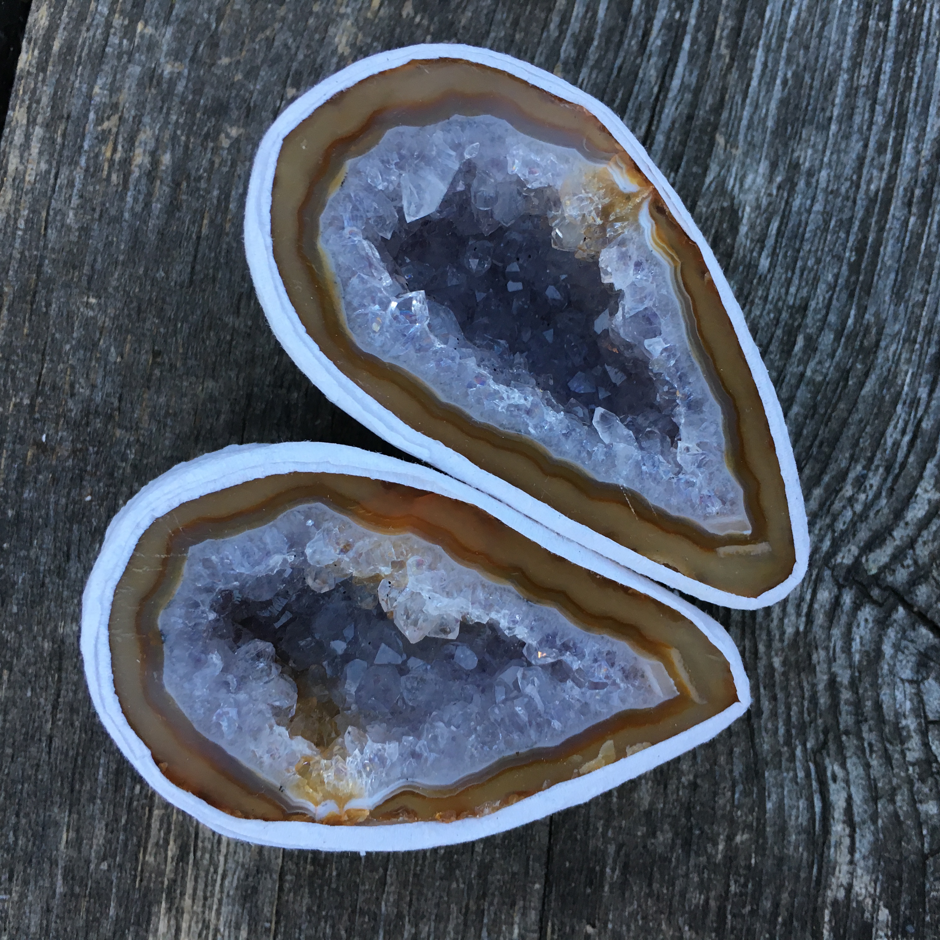 Love Stones- Found in Brazil, these geodes or ocos are cut in half and polished on two sides. Keep half for yourself, and give the other half to a loved one.