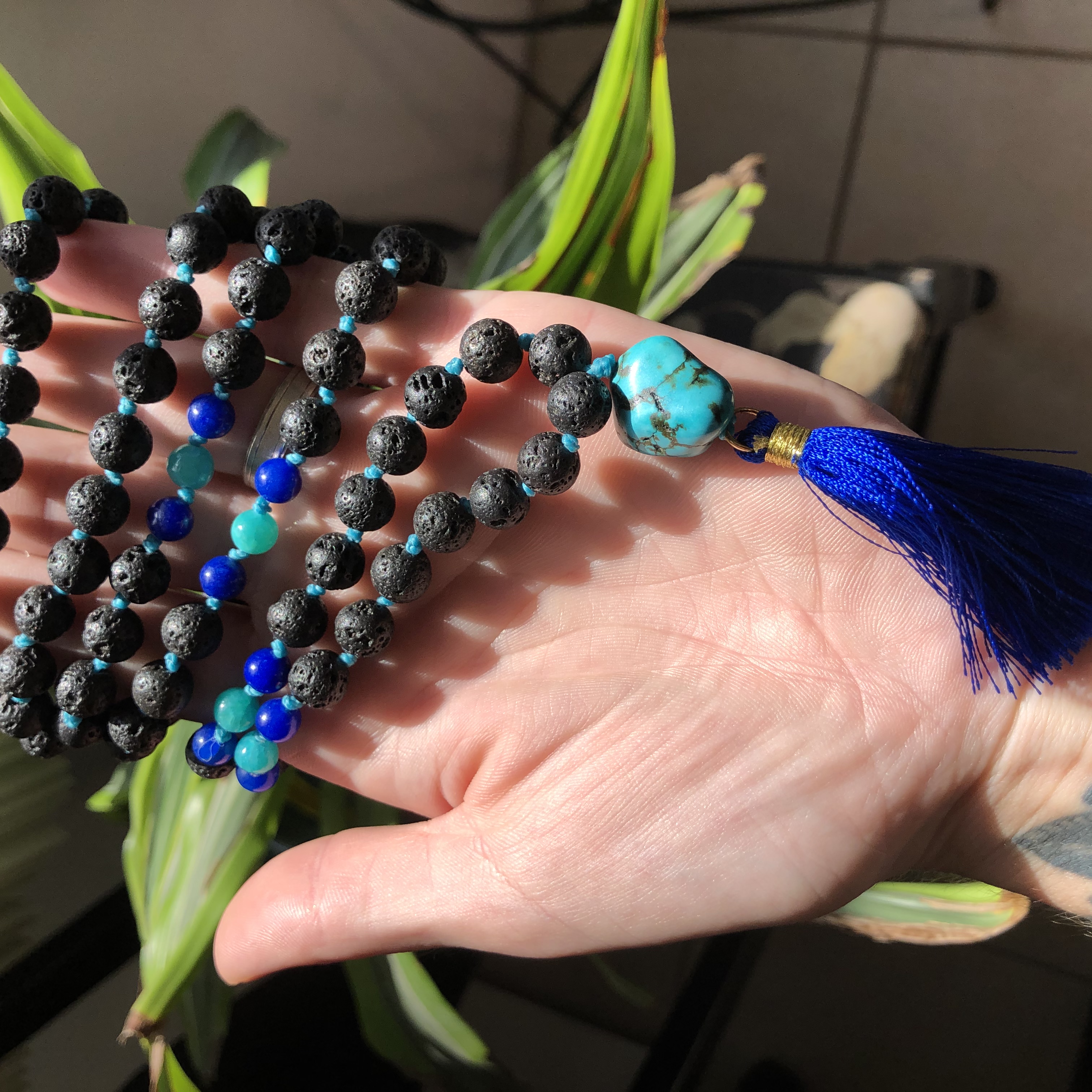 Lava Rock & Turquoise Mala Beads