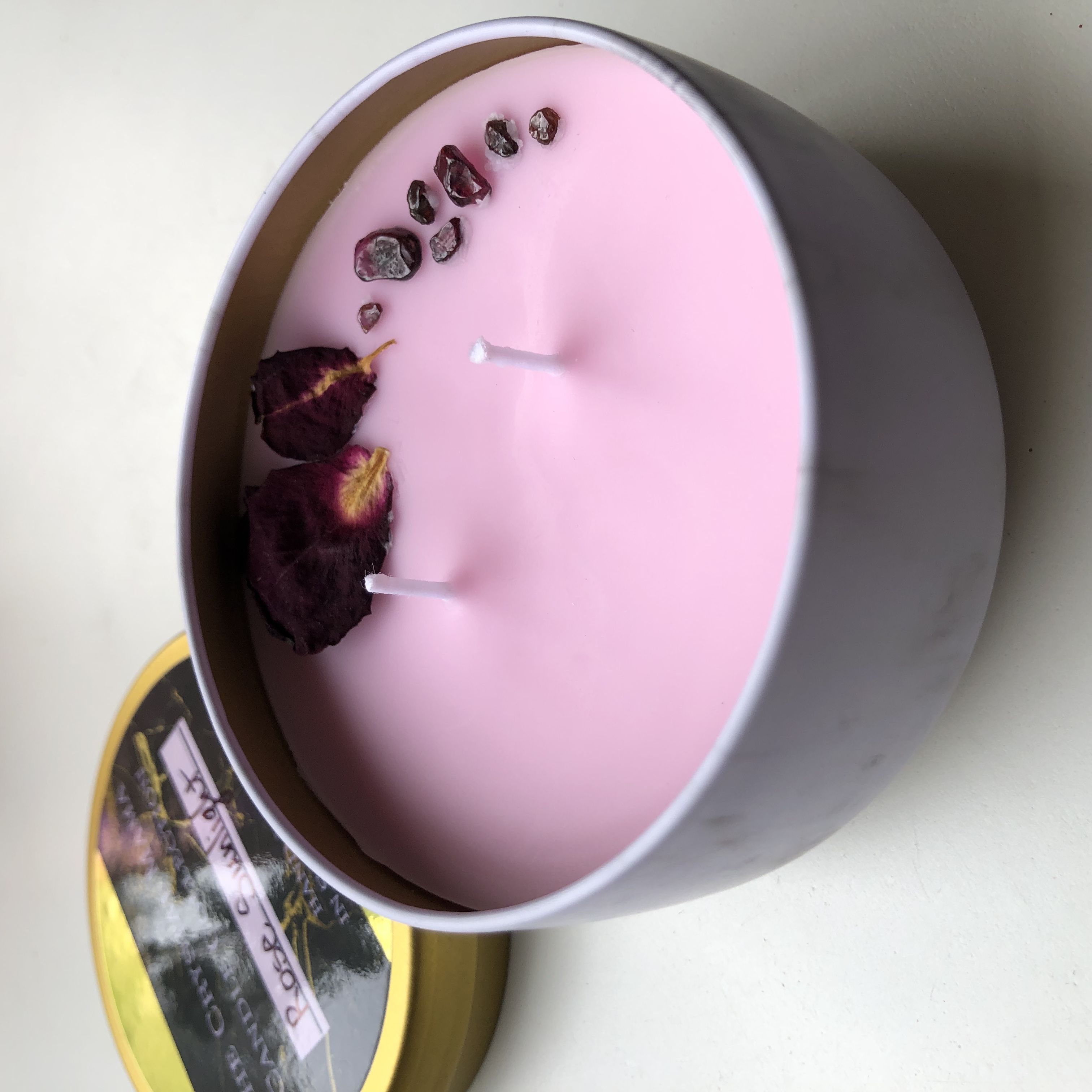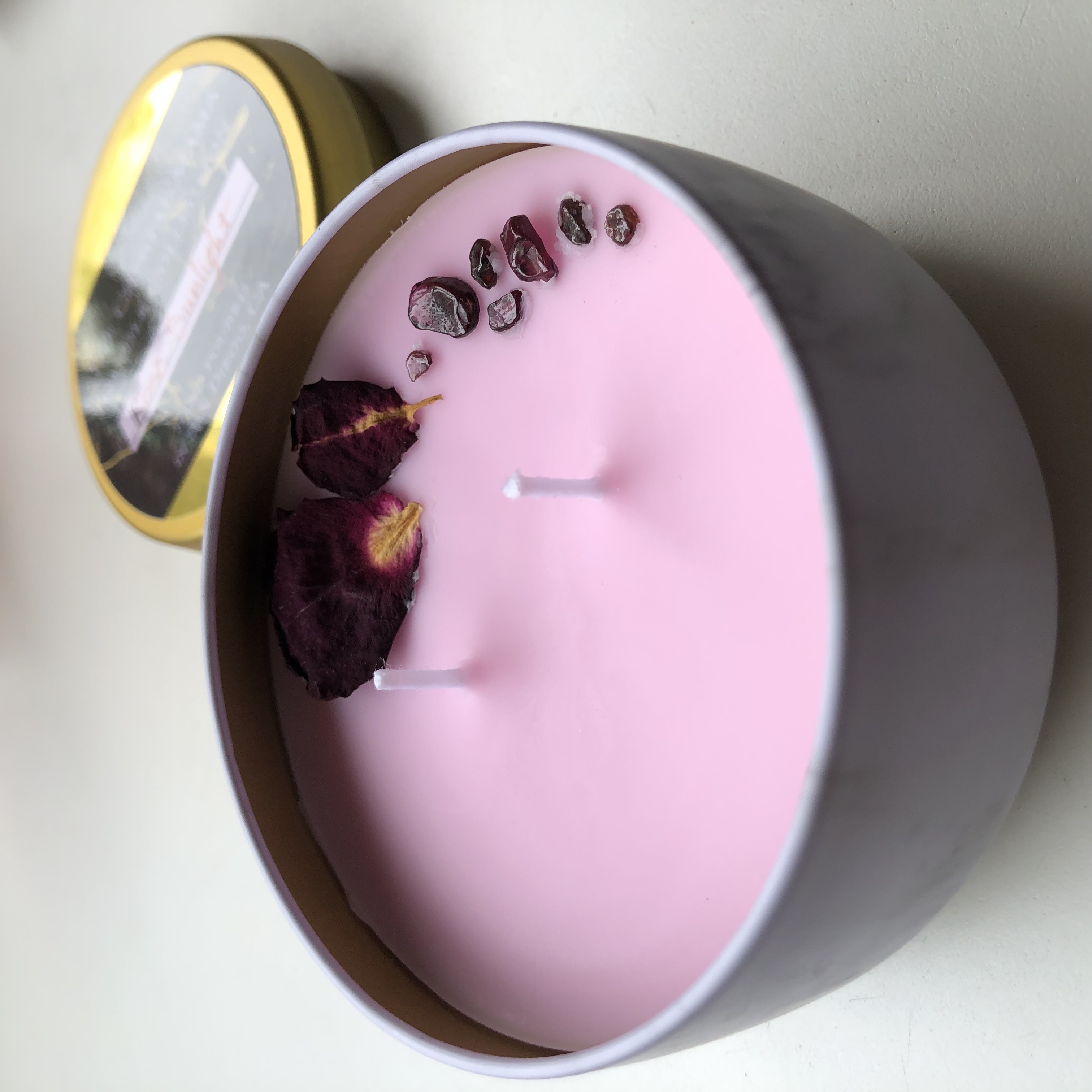 • Additions: Garnet crystals, along with rose petals grown from my garden